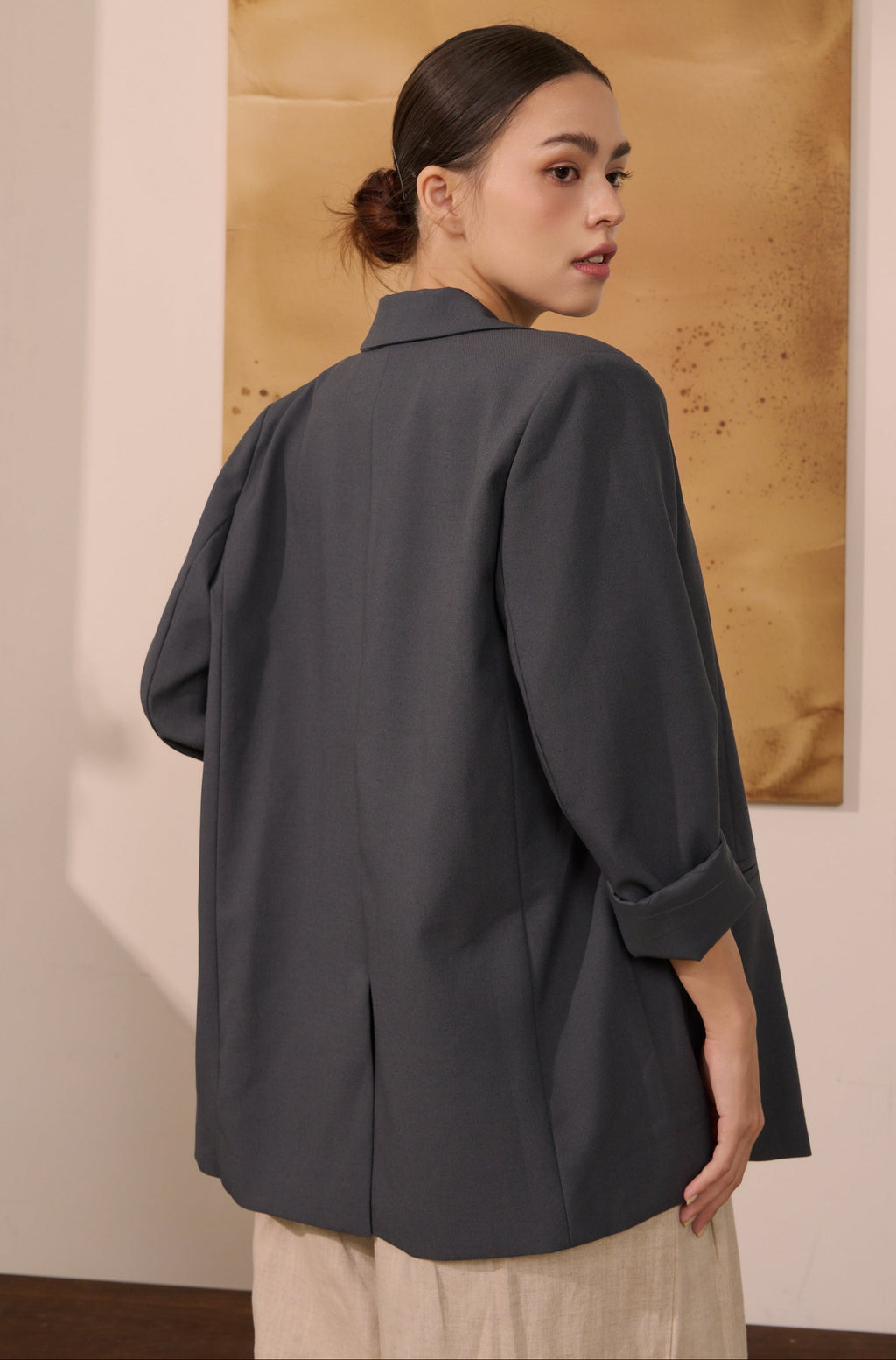 Soft power blazer in grey 此商品需追加,下單後將於21-30個工作天出貨,若可接受等待時間再請購買,謝謝.