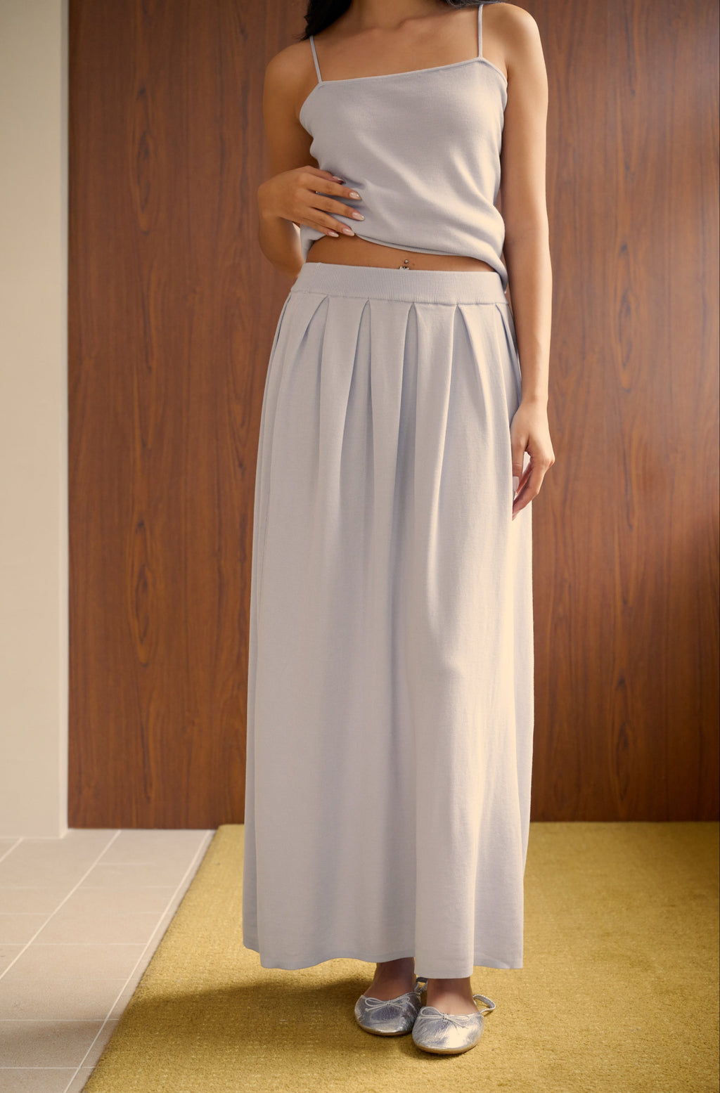 Cool breeze pleated knit skirt